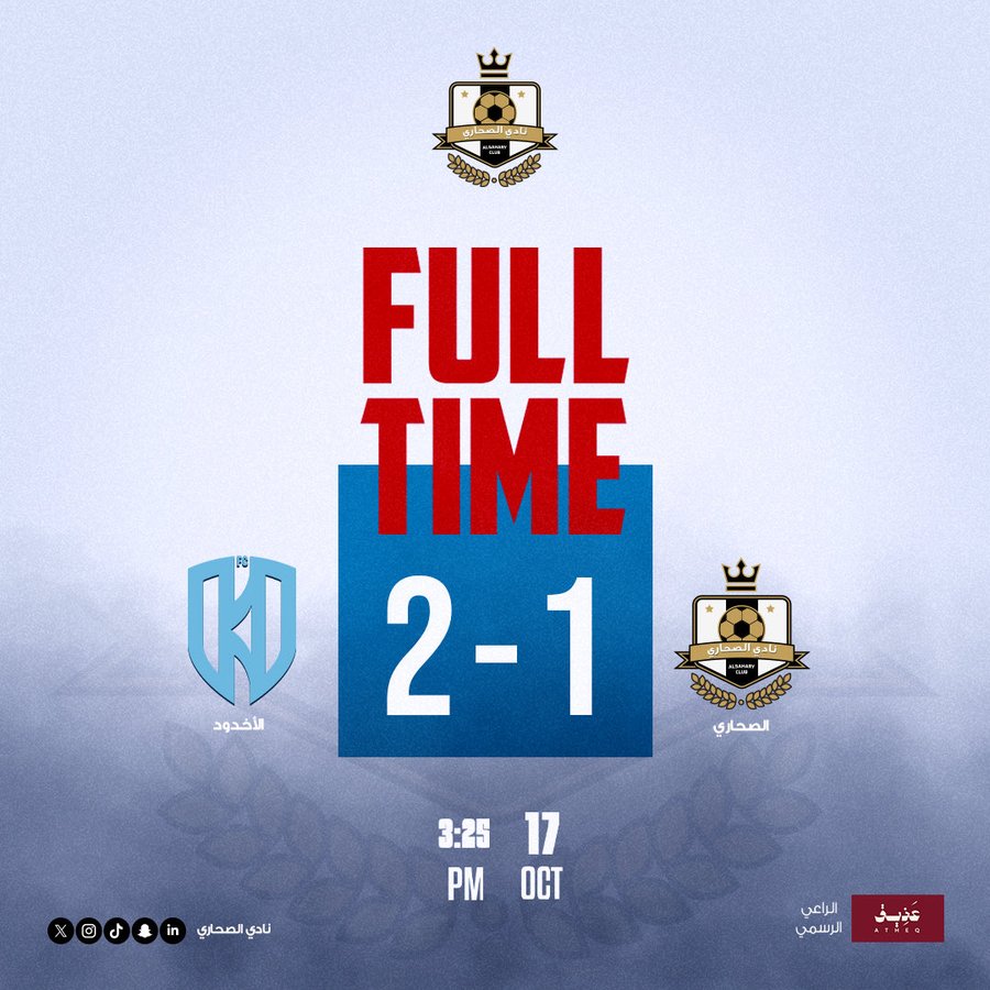 ⚽️ نهاية المباراة | U18 الصحاري 1 × 2 الأخدود